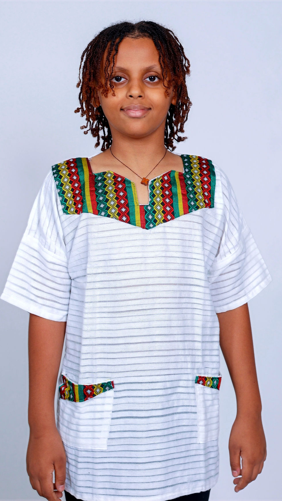 Our clothes are made by the ancient Ethiopian tradition of handwoven art and embroidering. The dyes are eco-friendly, made from local plants, natural herbs, and products from different parts of the world.